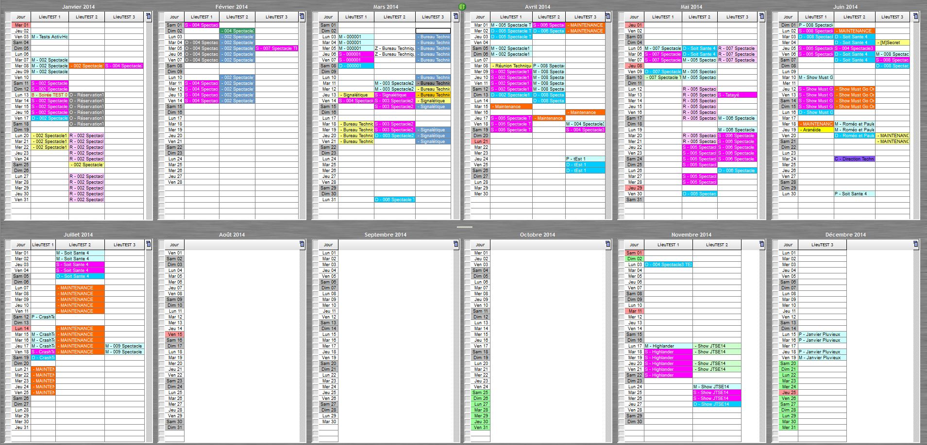 L'Annuel des lieux en colonnes  permet de voir et d'imprimer l'occupation de lieux sur un an. Pour l'affichage et l'impression, cet outil ne travaille que sur 3 lieux. Si vos groupes de lieux en contiennent plus, il ne prendra en compte que les trois premiers.