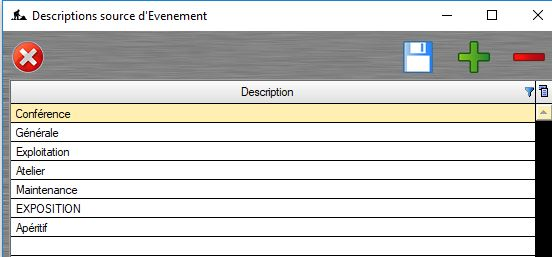 3/Enregistrez dans le tableau toutes les descriptions souhaitées en sources d'événements