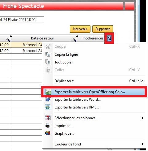 1/ Affectez le matériel à ce spectacle comme si celui-ci appartenait à votre structure : faîtes un clic droit sur la table Matériel et sélectionnez
