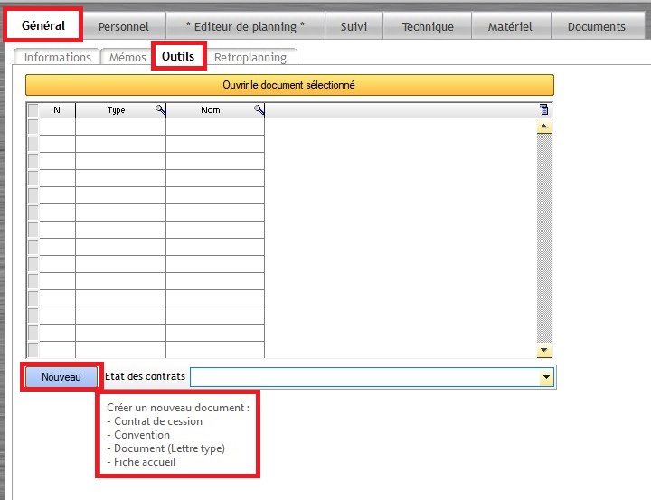 Pour réaliser des documents, lettres de confirmation, contrats de cessions et conventions (de prêt de salle, de location, ...), il est recommandé d'utiliser l'Editeur de Documents