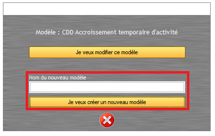 4/ Rentrer le nom de votre nouveau modèle et cliquez sur le bouton "Je veux créer un nouveau modèle"