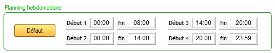 Attention, l'heure de début d'une tranche doit être identique à l'heure de fin de la tranche précédente. Vous pouvez ne pas respecter cette règle, mais certaines lignes de planning risquent de ne pas s'afficher.