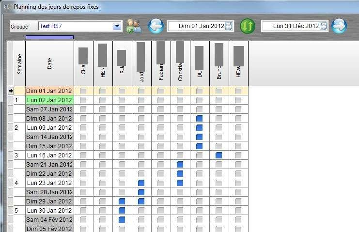 Saisie des jours de repos fixe depuis le planning des jours de repos fixe :