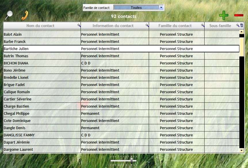 Il est possible de créer des contacts qui ne font pas partie de ces 4 familles depuis la fenêtre Contacts.