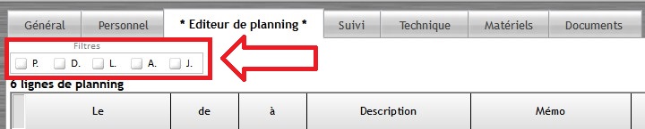 Pour les cas de planification complexes, il est possible de filtrer le planning :
