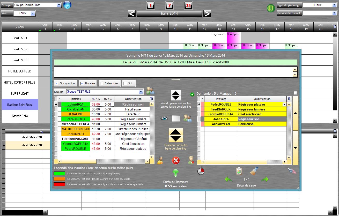 Info : un double clic sur la ligne de planning ouvre la Fiche du Spectacle ou de l'Activité.