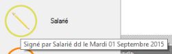 Info : Le nom du signataire et la date de signature apparaissent dans une bulle d'aide quand on survole avec la souris la signature dans le volet "Signatures" dans la boîte à outils.