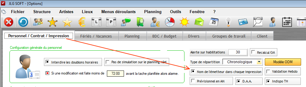 3/ Cochez la case "Nom de l'émetteur dans chaque impression"