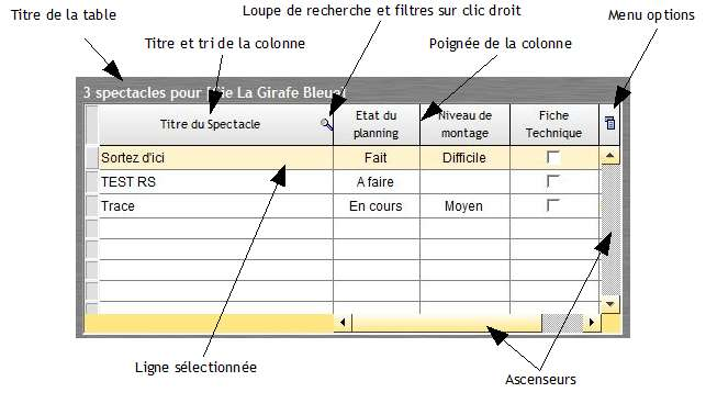 Pour l'affichage et la saisie des données, RS utilise des tables. Une bonne connaissance de leurs fonctionnements vous fait gagner beaucoup de temps et vous permet de bien visualiser toutes vos données.