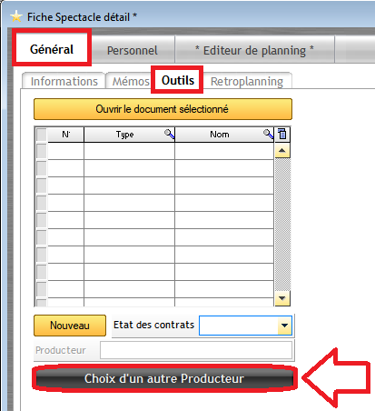 1/ Allez dans la fiche spectacle / onglet "Général" / sous-onglet "Outils"