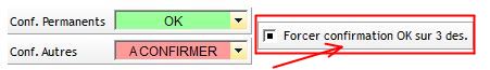 Dans l'onglet "Planning" dans "Outils/Options, une option générale permet de forcer l'état de confirmation sur "OK" si la description est REPAS ou une des deux descriptions ne comptabilisant de temps de travail effectif (paramétrées dans le même onglet).