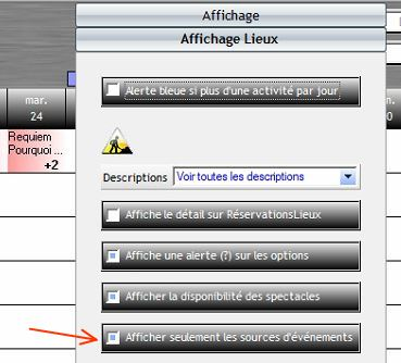 Dans le Planning Graphique des lieux, il est possible d'afficher uniquement les "sources d'événements" dans le planning.