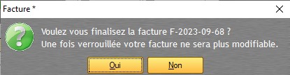 2/ Un message apparaît pour vous spécifier qu'une fois verrouillée la facture ne sera plus modifiable. Cliquez sur "Oui".