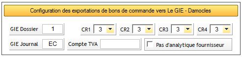 S'ils ne sont pas visibles, cliquez sur le bouton "Configuration des exportations de bons de commande vers Le GIE - Damoclès" pour faire apparaître les champs.