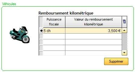 Saisissez ici les paramètres des véhicules (Configurations du personnel - Gains G15).