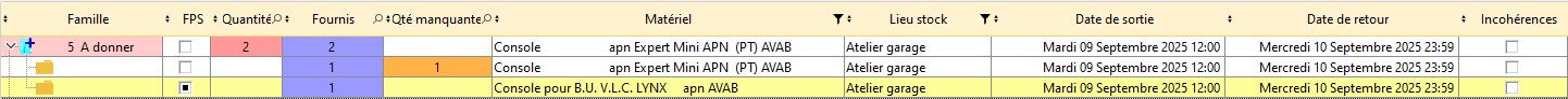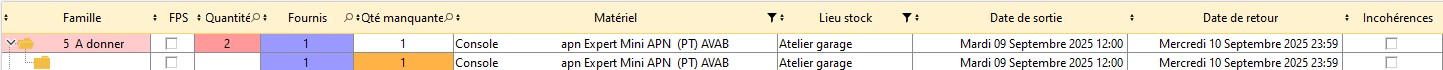 2/ Ma structure a pu fournir 1 Console apn Expert Mini APN (PT) AVAB stockés dans le lieu "Atelier garage". Il manque donc 1 Console apn Expert Mini APN (PT) AVAB.
