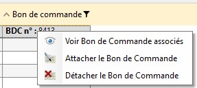 1/ Faîtes un clic-droit dans la case "Bon de commande" correspondante à la ligne Matériel souhaitée.