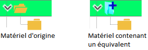 Info : lorsqu'une quantité de matériel contient au moins un matériel équivalent, vous êtes avertis grâce au changement d'icône :