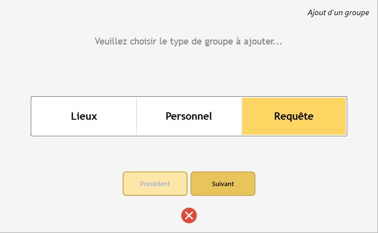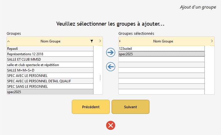 4/ Sélectionnez le groupe de lieux ou de personne à ajouter en double-cliquant. Cliquez sur le bouton "Suivant".