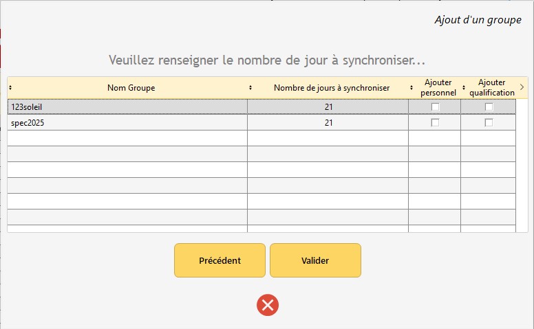 1/ Double-cliquez sur le nombre de jours à synchroniser directement dans la table.