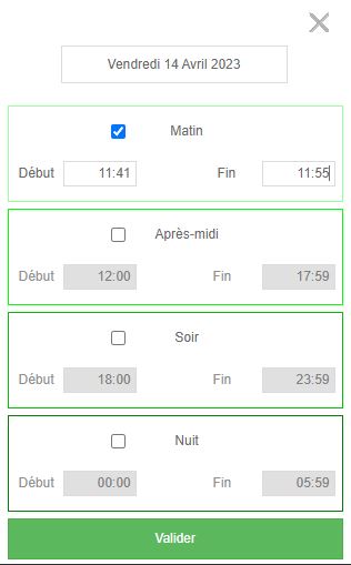 Un personnel peut aussi saisir manuellement ses heures réelles. La badgeuse récupère les données sur une fourchette de temps d'une journée, allant de 06:00 du matin à 06:00 le lendemain.