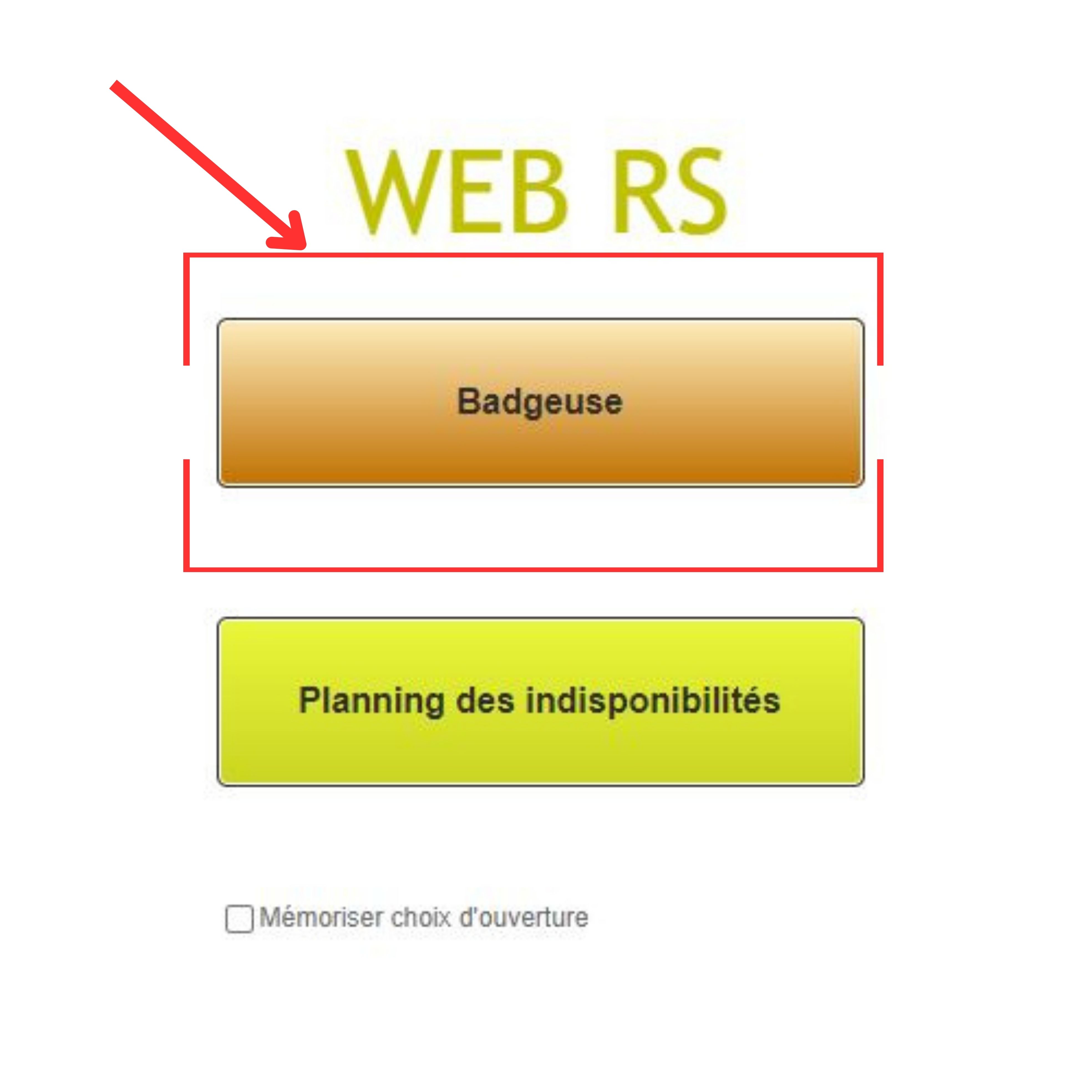 Pour accéder à l'outil badgeuse de WebRS, il y a trois étapes.