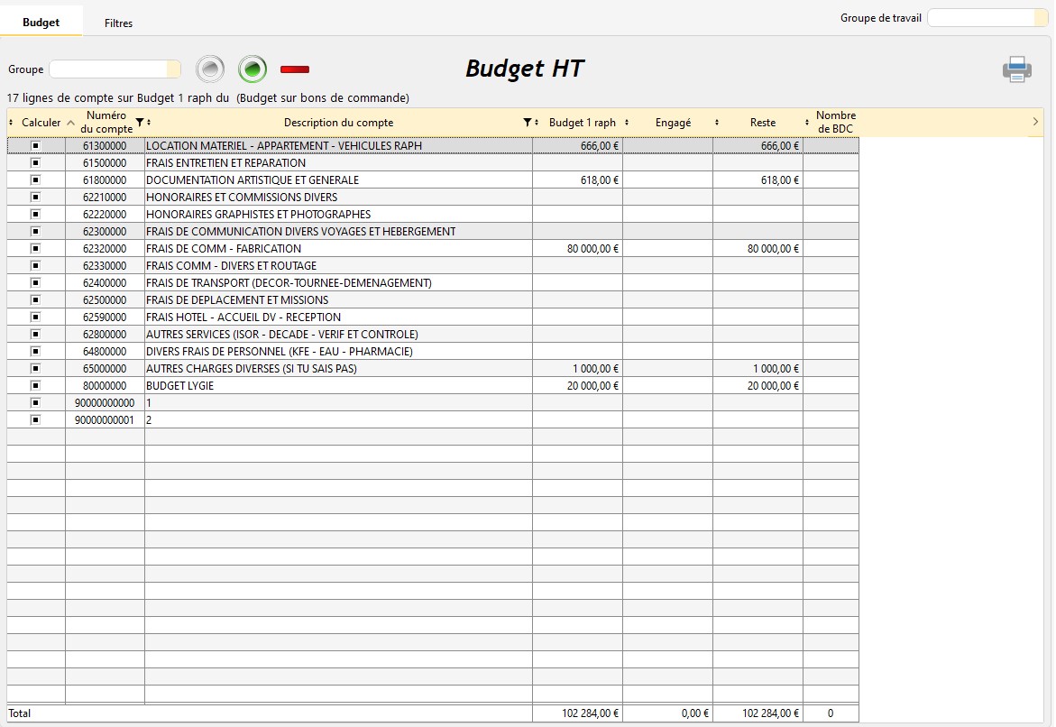 Le champ "Groupe" permet de n'afficher dans la table que certains numéros de comptes.
