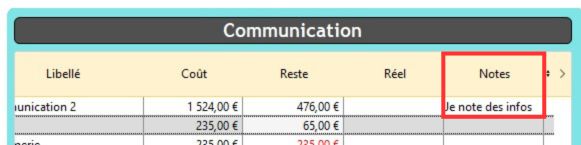 Info : Chaque cellule "Note" est limité à 50 caractères.