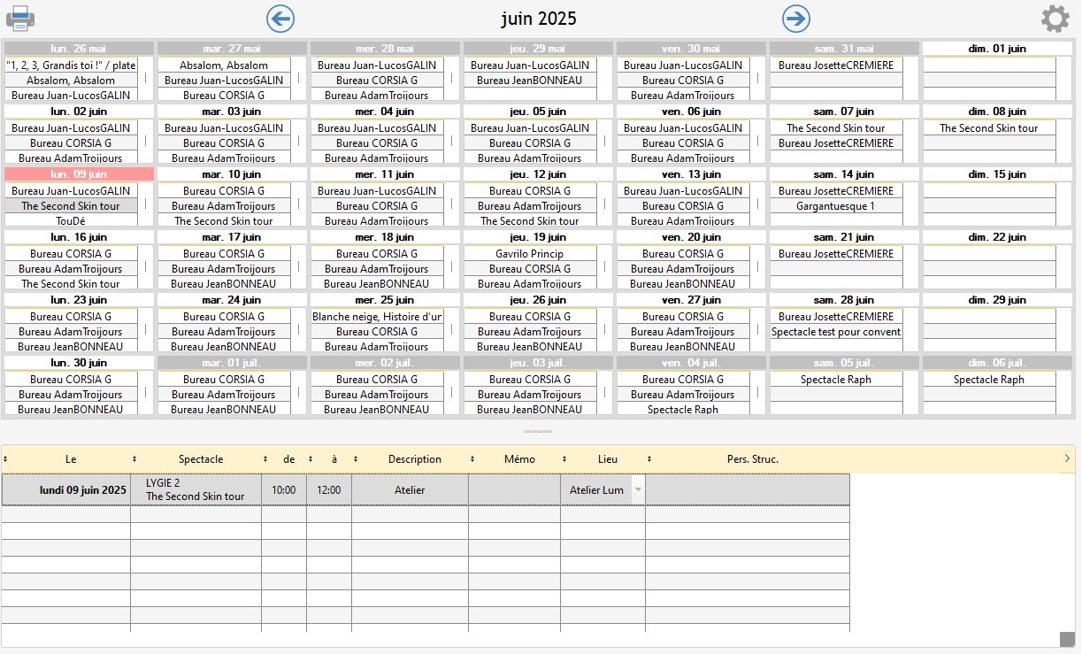Il offre une vision globale et synthétique et permet aussi d'accéder à l'éditeur de planning d'une fiche spectacle/activité.