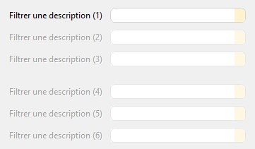 . Les volets déroulants "Filtrer une description" permettent à l'utilisateur de filtrer le planning sur une ou des descriptions précises et sélectionnées par l'utilisateur.