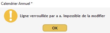 Si la ligne de planning est verrouillée, il sera impossible de la modifier. Une fenêtre d'alerte donnera à celui qui essaie de planifier le nom de l'utilisateur ayant verrouillé la ligne.