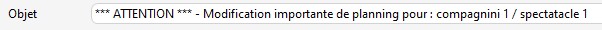 L'objet du message est créé automatiquement mais reste modifiable : Il reprend le nom de l'artiste et son spectacle.