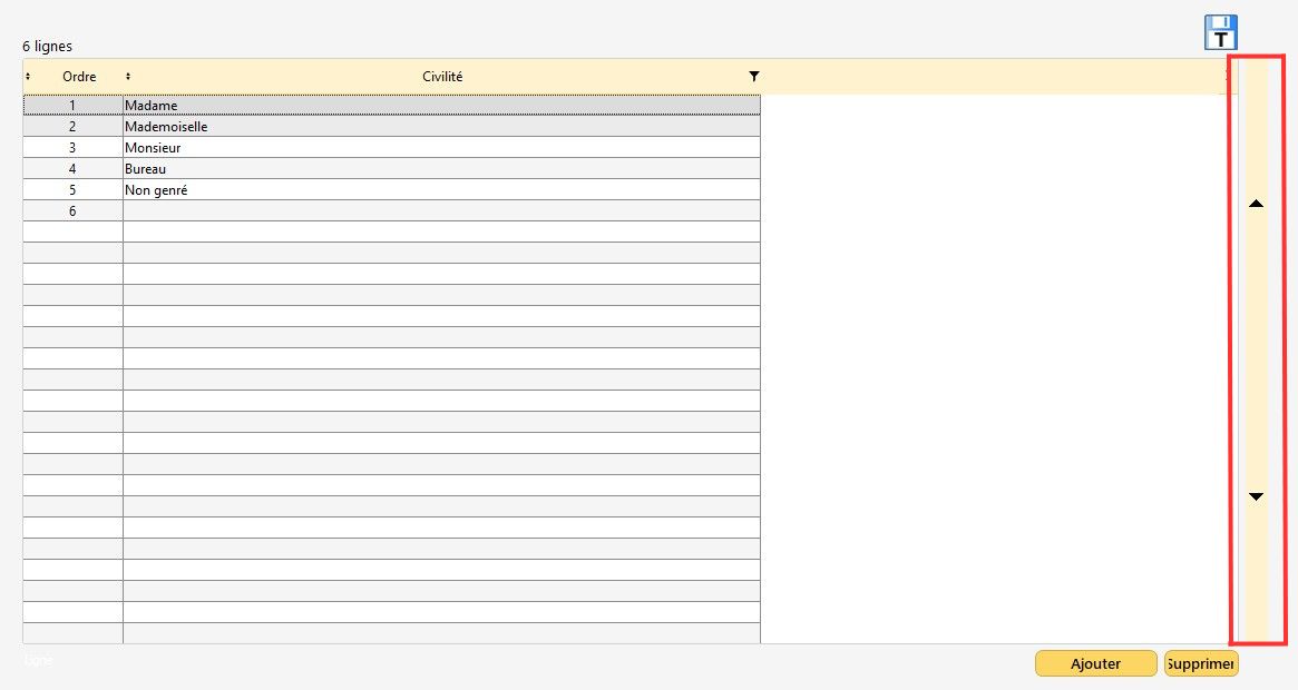 1/ Cliquez sur les flèches jaunes verticales pour changer l'ordre d'apparition des éléments.
