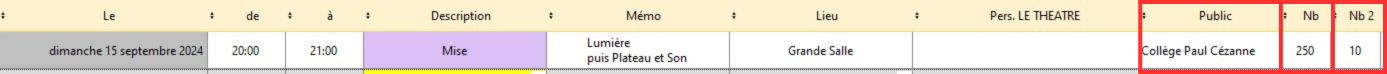 Une nouvelle colonne "Nombre 2" apparaît dans les plannings pour compléter les colonnes RP existantes : "Public" et "Nombre".
