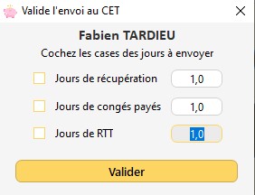 Ce temps pourra être utilisé en cours de saison depuis la fenêtre de validation rapide en cliquant sur le bouton "CET"