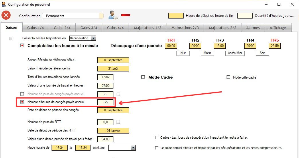 ATTENTION : les 2 modes (jour et heures) ne peuvent pas fonctionner ensemble dans la même configuration de personnel : soit les congés payés sont en jour, soit en heures.