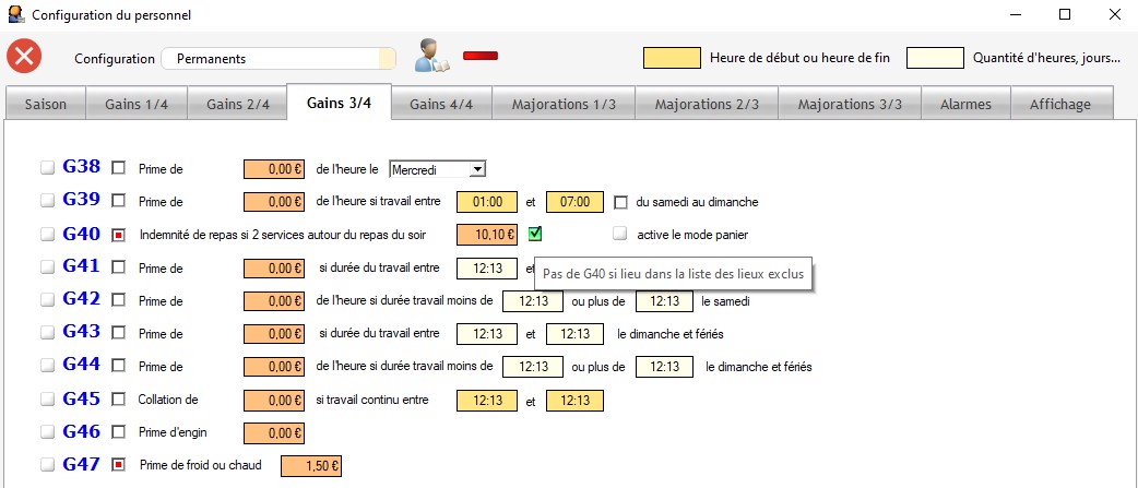 - l'application automatique des gains et majorations inhérents au planning