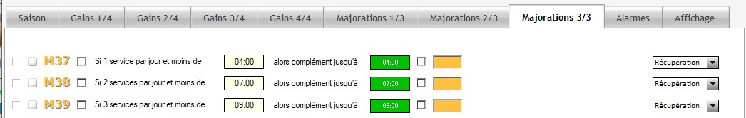 - Majorations (3 onglets)