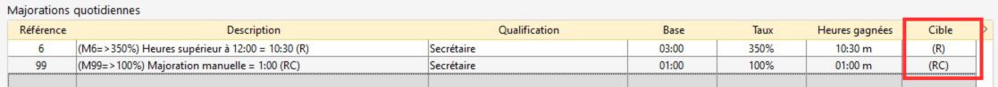 Chaque majoration peut être envoyée vers un compteur spécifique appelé "cible".