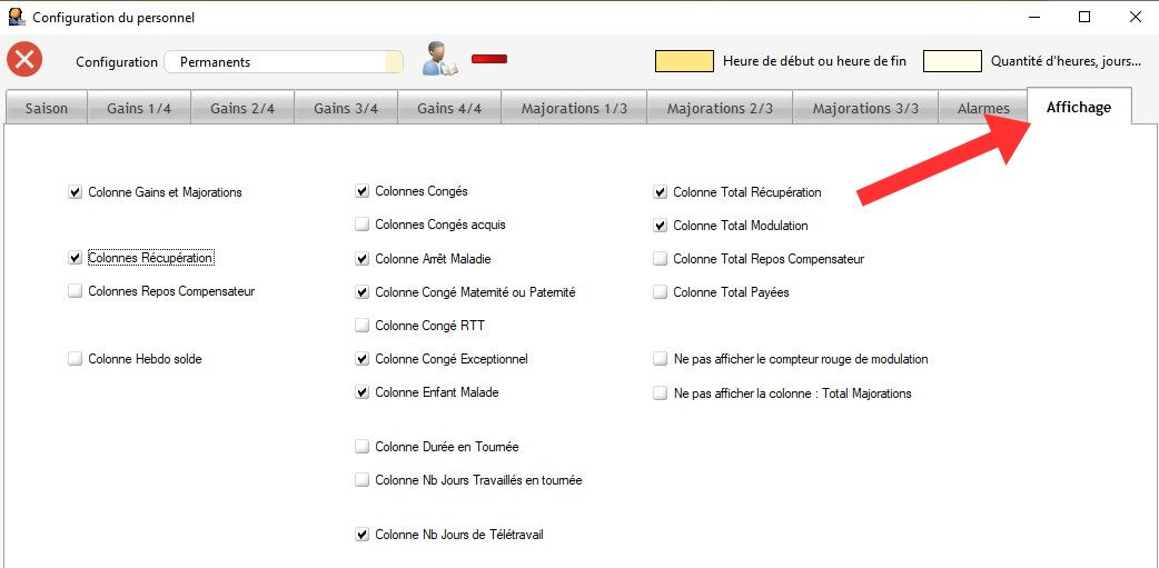 Info : La coche "Ne pas afficher la colonne : Total Majorations" permet de ne plus afficher cette colonne dans le Planning annuel.