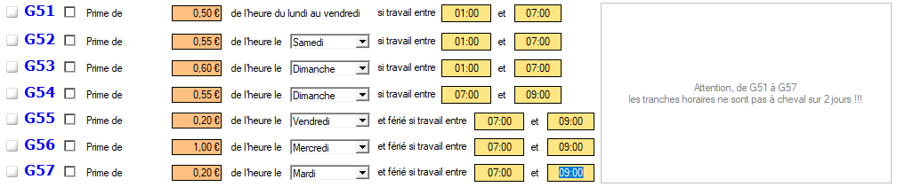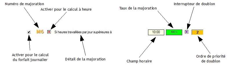Les majorations M9 / M15 / M17 / M21 ne font pas appel à un taux de majoration, mais à un nombre d'heures et de minutes fixes.