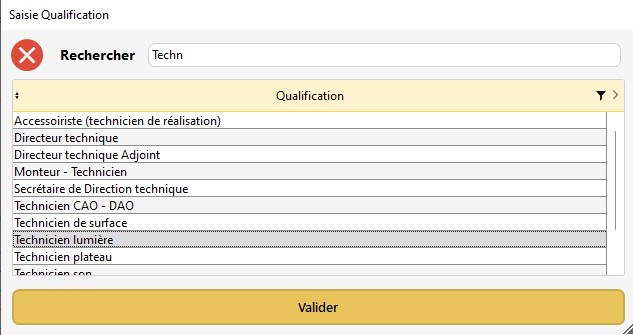 Une fenêtre s'ouvre pour sélectionner la qualification de la personne affectée sur les lignes de planning.