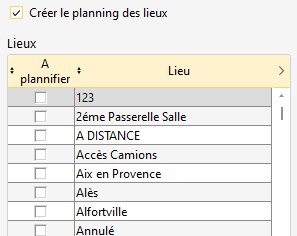 La table "Lieux" permet la création de lignes de planning identiques sur plusieurs lieux en même temps.