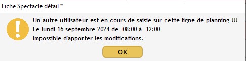 Dans l'hypothèse où deux utilisateurs souhaiteraient écrire en même temps sur la même ligne de planning, un message apparaîtrait :
