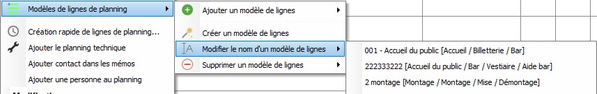 2/ Survolez "Modèles de lignes de planning", puis "Modifier le nom d'un modèle de lignes".