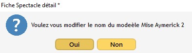 Il est possible de demander la création de lignes de service technique sur d'autres descriptions que les descriptions "Spectacle" et "Show". Pour ne pas vous tromper, un message vous propose de confirmer cette création.