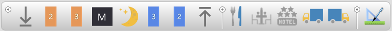 La barre d'action est une liste de raccourci permettant d'écrire des lignes de planning plus rapidement. Elle apparaît uniquement lorsque vous êtes sur l'onglet "Éditeur de planning" d'une fiche spectacle / activité. Vous pouvez la saisir et la déplacer partout sur votre écran en maintenant le clic gauche enfoncé. Le design de la barre d'actions est lié à celui de la barre d'outils sélectionné par l'utilisateur :