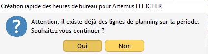 Si vous continuez, les heures de bureau seront ajoutés au planning prévisionnel.