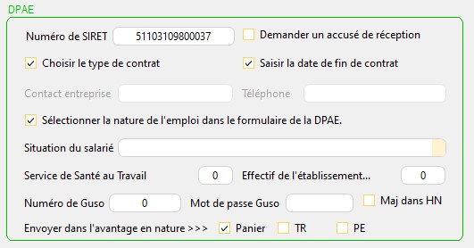 Vous pouvez saisir ici les paramètres de la DPAE ou du GUSO.