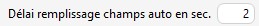 Astuce : Si le remplissage automatique des champs s'effectue mal, renseigner un délai en secondes.